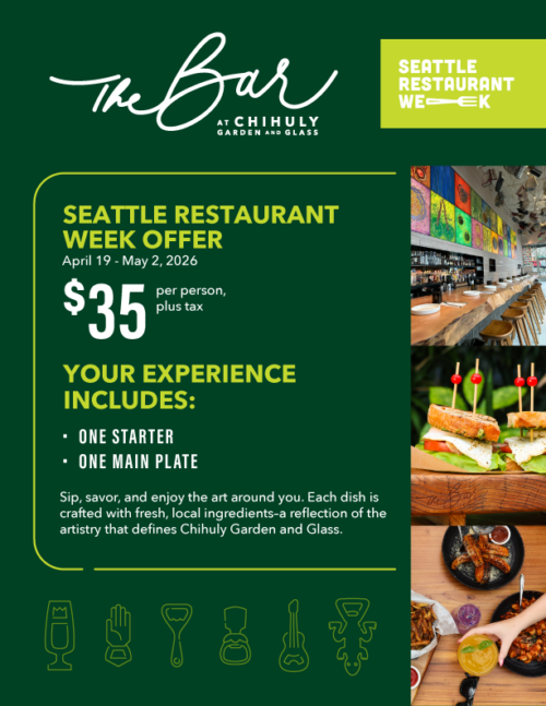 The Bar at Chihuly Garden and Glass features craft cocktails alongside delicious bites and plates
